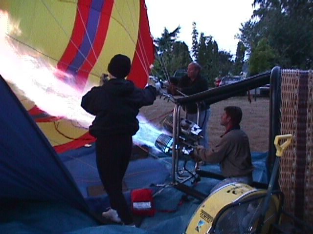 Once the bag got full enough of cold air, they began firing the propane burners. Keely liked this part because she got to warm up.
