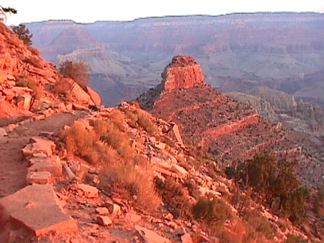 The South Kaibab, scouted in the early days of the canyon as a way to avoid paying the $1 toll for using the easier, more gradually descending Bright Angel trail. Same drop, only 4 miles shorter. Oh, yeah, don't forget the South Kaibab is exposed to the screaming, torturous sun. |