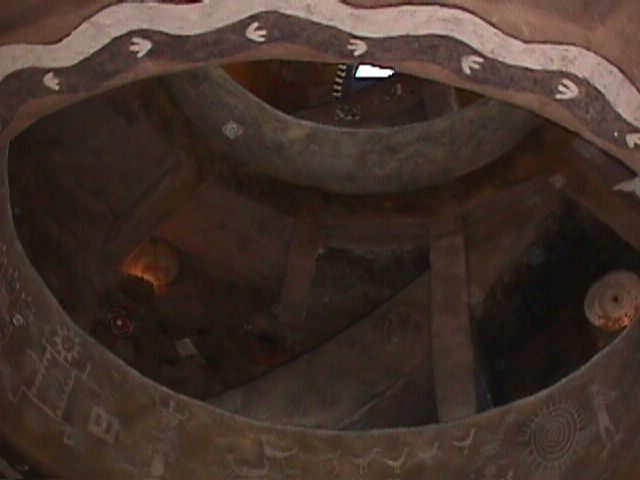 The place was designed to resemble a traditional Kiva - ceremonial house. I am not sure any kivas were 3 stories tall though.
