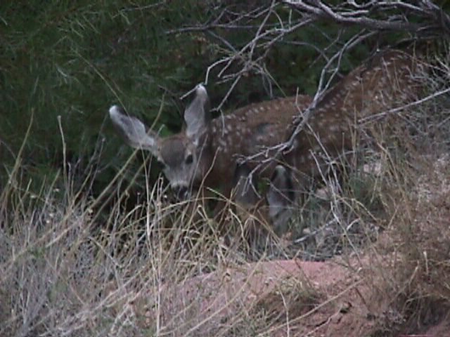 These damn fawns would just stand there, daring me to shoo them away. Big fines for harassing the wildlife, so I just waited for it to lose interest and wander off. There were 6 deer in this incident, 3 does and 3 fawns.