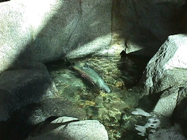 The airport in BC was a hoot, like they were trying to stuff and entire Canadian experience into one confined area. This plastic salmon in an artificial stream is an example. After cruising the airport, I feel I absorbed enough Canada to be able to say "Been There, Done That." I mean, it's not like they are a foreign country or anything (I don't care if their money does look funny). |