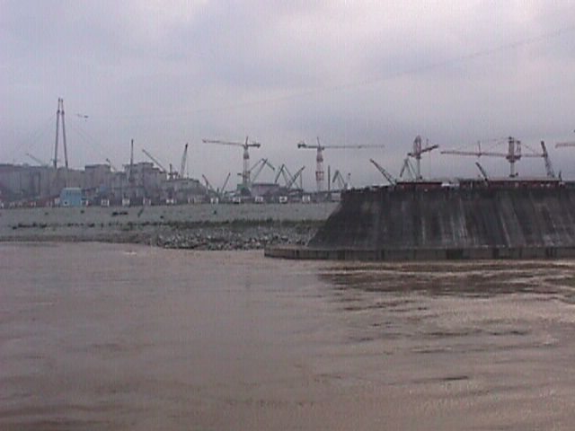 This was our first glimpse of the 3 Gorges Dam as seen from our tour boat on its way down river.