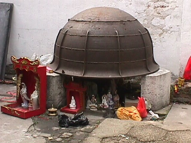 I am not sure what this is. It looks like an overturned cooking pot that has become a shelter for small gods.