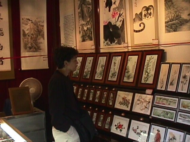 The whole of Nanshi (Old Town) is filled with shops, most of which have very good prices. We were looking at artwork made from intricately cut pieces of paper.