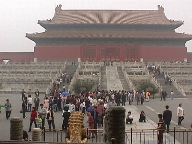 Shot from the Gate of Heavenly Purity, which leads to the Inner Court, back to the Hall of Preserving Harmony. Those things on the very top of the roof are water dragons, there to protect against fire.