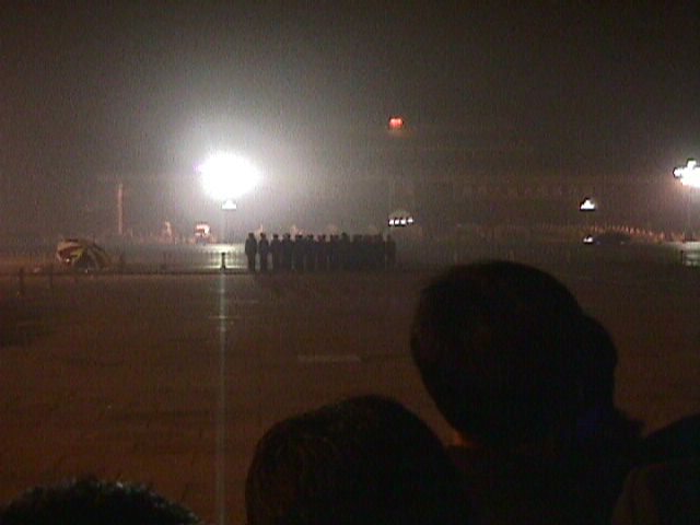 We caught a taxi to Tiananmen Square for the flag raising that happens every day at sunrise. When we got there it was still pretty dark and there were only a couple of thousand people waiting around. Then the soldiers came.