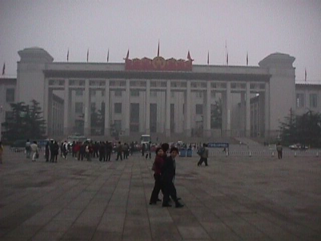 Mao's tomb. It wasn't open. They have him on display in there. Or, this might just be a big building, I can't remember. But they do have Mao on display in a tomb in Tiananmen Square, and it is closed, so I got that part right.