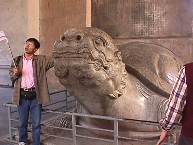 We stopped first at the Sacred Way, a boulevard dead emperors were carried down to their tombs. Parker, our guide, stopped at this massive stele to explain some of the details. That arm on the right belongs to Chuck, an amazing man who was never expected to walk again after being involved in a monorail accident last year. That's right, a man expected to be bed-bound until his death from an accident on a monorail was touring China with us. If that is not an inspiration, I don't know what would be. |