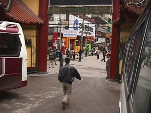 Sorry about the crappy picture. I took this from the bus as we left the courtyard of the chair lift. There is a sign through the passageway with a blue line on it. That blue line indicates where the water level will be in 2009, about 130m (429ft) higher than it is right now. |