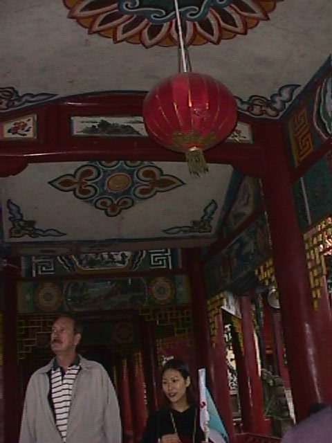 This is Ed (standing 6'7" be got a lot of attention on our trip) and Kathy, our local guide at Fengdu. The interiors of the buildings were just as fantastic as the roofs.
