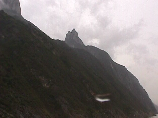 This is Goddess peak, named after Yao Ji. She used to hang out at Wushan a lot, and one day after roaming afar (ignoring her task to minister to the Jade Pool of Western Heaven), she saw 12 dragons cavorting (wreaking havoc) among the mountains, so she summoned Da Yu, convinced him to help (if you know what I mean) and he had his oxen use their horns to tear the path for the gorges through the countryside. |