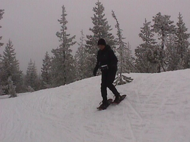 Keely trekking down a small hill.
