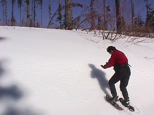 I can't remember what this place is called, but it is south of Hoodo on Highway 20. The snow season was just about over, and everything was hardpack. Keely decided to use her snowshoes, I went without.