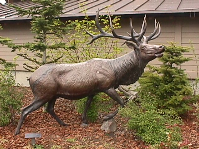 They also had a bronze elk so we would remember what they looked like (but not what they taste like). That little sign in the lower left says "Help us preserve this work of art" but it is placed exactly where I needed a step to vault onto the elk's back for a picture . . . |
