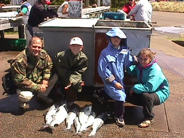 The next day we went on a Salmon fishing trip. Wendy caught the first one and then her second only minutes later. Shane and I both limited out as well, Cody got one but Steve got shut out. It was almost a Disney ending with the boat about to pack it in. Steve had the only line out and and all the sudden it was FISH ON!. He pulled in the fish and the whole boat was cheering - but alas, it was not to be. He had caught a Natural salmon, one that was born in the wild. You can only keep hatchery fish. So sad. |