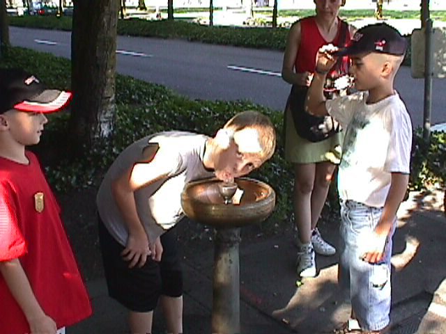Next, we went downtown and soaked up some of the Gamorran atmosphere. Sadly, I had to explain the story to them so they understood the reference. Shane took a drink from one of the Benson (?) fountains. These fountains were installed by rich dude Benson after he could not get a glass of water without first buying a beer in Portland's many (many many) beer halls. |