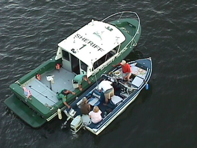 On our return trip over the bridge, we saw the watercops pull this boat over.