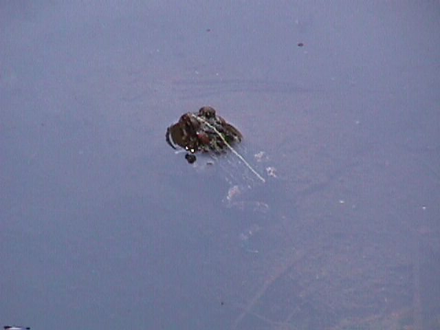 And there I saw this frog. For the last few years, we have been told that we are in the middle of an Amphibian Die Off, and people have been fearing the extinction of frogs, turtles, etc. This trip we saw two good sized frogs, a snake swimming in the water, and a fish committing suicide (that last one needs a personal telling, I can't explain it on paper). |