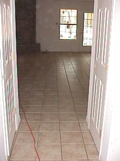 Steve likes tile. His house is about 2400 sq. ft, which means there is a lot of tile. This is from the entryway through the livingroom.