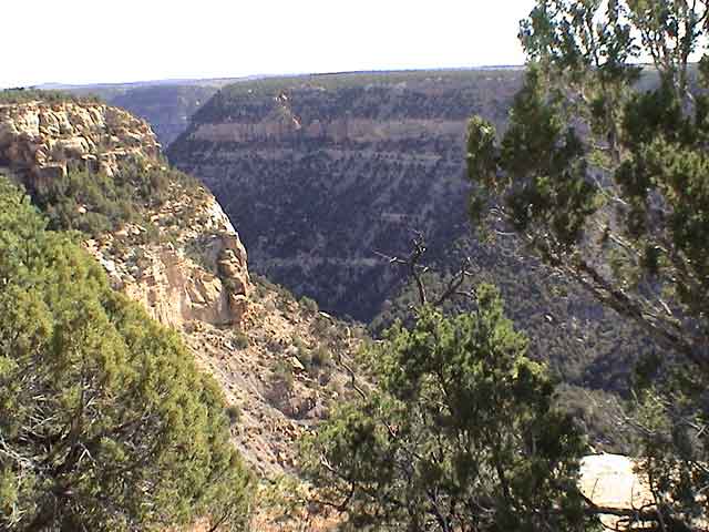 We ran back to the room and rousted Jim and Gloria out of bed and drove to the parking lot for Balcony House. You have to go on the tour to see it. This is the view from over the top, Balcony House is just over the edge in front of us.