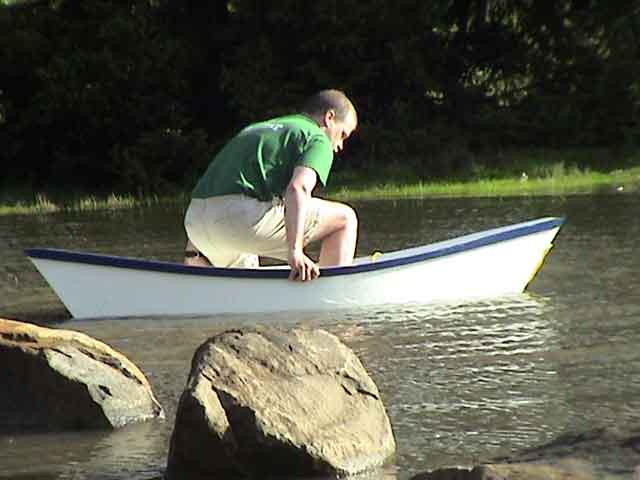 Made of 1/4" ACX plywood and cedar stringers, the Duzer Jean weighs about 15-20 pounds. I gingerly stepped inside.