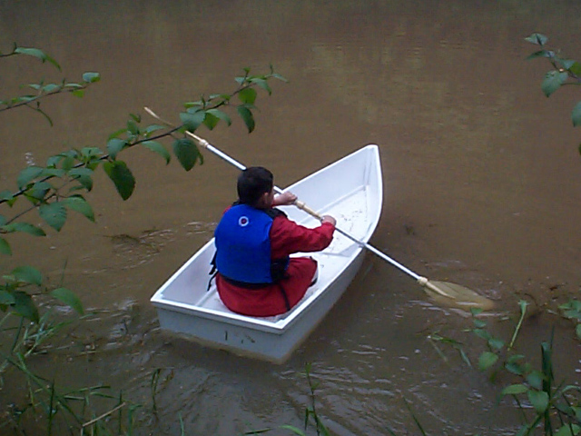The kayak paddles were a huge improvement over the oars (but I still left the oars at Doug's house - no room for failed experiments at mine). Trace was off and paddling in seconds.
