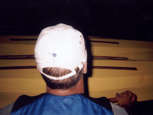 The lowpoint of the trip came when we should have been happiest. At 9:00pm we reached Rogers Landing, which I mistook for Yamhill Landing (which we had passed 6 miles and 2 hours back). While looking for the promised campsites, we met Ken and his grandson Joshua. Josh was about 5 years old, bubbling with enthusiasm, and probably a little touched in the head. Ken said we were right across the river from Champoeg Park and Josh pointed to some boat docks about 1/2 mile down river and said we could camp there. The guys were wiped out by this time, so I put Cody in the front of my canoe, Ryan on the breasthook behind me, and stacked their canoes sideways across mine. I paddled downriver until, to my horror, I saw the supposed camp sites were actually privately owned docks with "Keep Out" and "No Trespassing" signs plastered all over them.