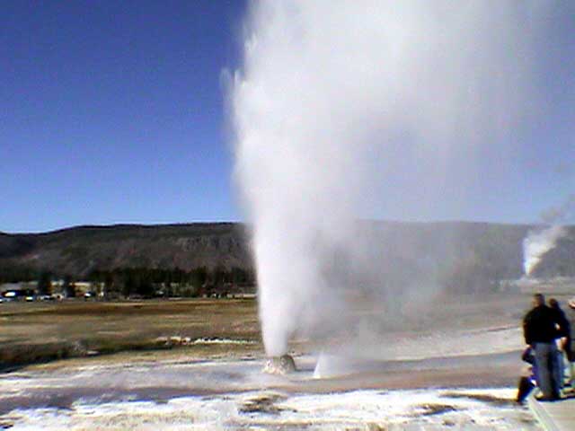 Beehivc Geyser had been blowing for several minutes before we finally ambled over. You can see another geyser erupting over to the right.