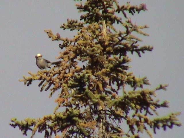 While we were waiting, we saw this Gray Jay up in a tree. These guys are pretty common and are rumored to get pretty bold.