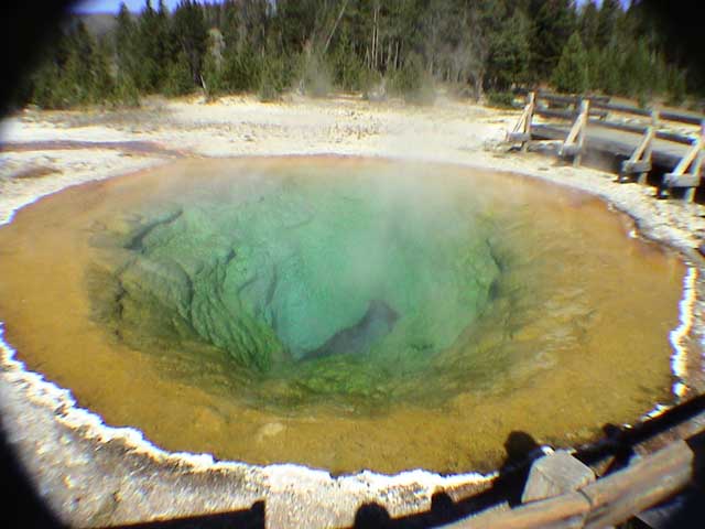 Morning Glory pool. This is maybe 20 feet across and pretty deep. It used to be all blue - indicating no algae or bacteria growth because the water is too hot.