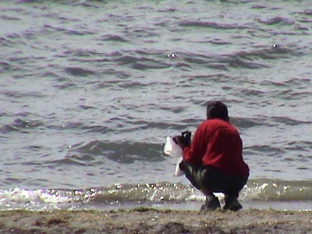 Keely touching the waters of Lake Yellowstone.