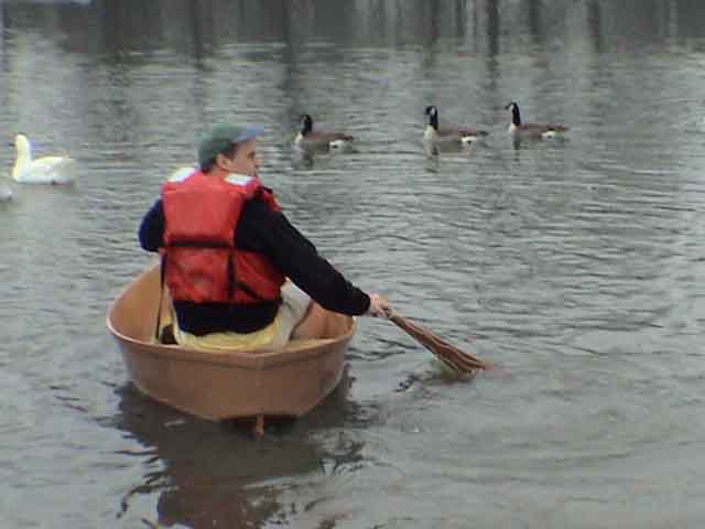 This was the big test: how does she track? Notice the stern is just a wee bit out of the water. I can probably move the seat back an inch or two.