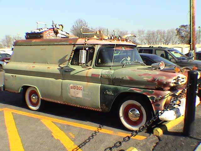 Out of the zoo, we saw this truck in the parking lot. Cow horns, faded flames, all kinds of signs - this thing was movable art. We took the shuttle to the street car and went back downtown to the Aquarium. Normally, you can take a boat down the river, but it was closed for repairs. |