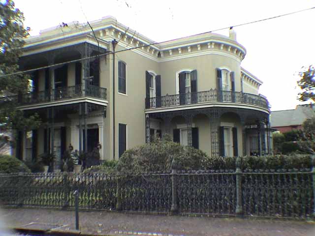 That cornstalk fence is in front of a couple more places. Upriver from the French Quarter (the river is the source of all directions in NO) is the Garden District - a place of palatial homes that were built after the Civil War (antebellum - "anti" meaning "after" and "bellum" meaning "Civil War" I suppose.) Notice that this fence does not have the corn ears and tassels painted - lazy b#stards. |