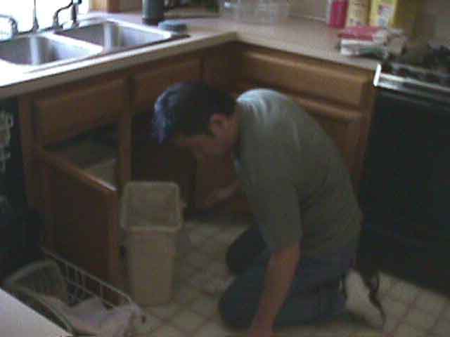 Since we still had a couple of days before Larry had to leave, I made him reorganize our kitchen. Man, I am a bastard.