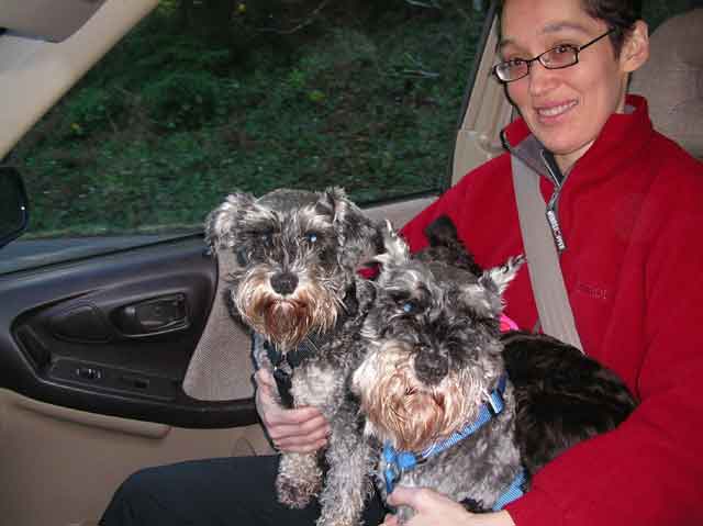 This year we loaded up the dogs, gifts, and my Puddle Duck Racer sailboat and headed for Keely's parent's home in Otter Rock. The dogs don't like to miss out on anything, so the front seat gets a little crowded. Still, things are a lot better since BeBop acclimated to car travel and doesn't vomit any more. |