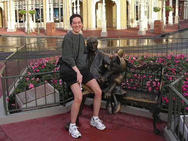 Keely has taken up sitting on the laps of bronze men, and so here she is sitting on Roy Disney's lap. When Walt died of cancer, Roy, 5 years his senior, took over and made sure Disney World became a reality. This speaks to the vision and commitment of Walt - his brother was able to finish buying up swamp land, spend $125 million making it buildable, and then construct the park. |