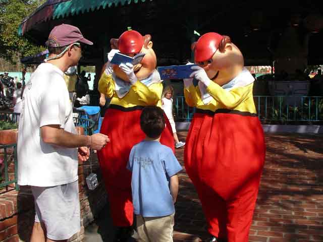 Tweedle Dee and his twin. We also saw the Mad Hatter and Alice on the rides (different Alice) but didn't get a shot.