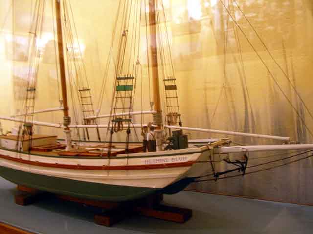 This model shows more clearly what I mean. Look at that flat bottom, the angle of the bow, the fact that it is about twice as long as it is wide. These things carried enormous loads of hay and other bulky cargo around the bay. Real workhorses of their day. |