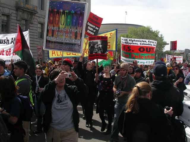And then the marchers came. And came and came. I think these guys are 'Goths for Peace.'