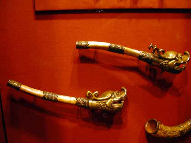 The Asian Art museum has some really outstanding exhibits, but - as usual - I was attracted to the ones made from human bones. These are 'spirit trumpets' that appear to be made from leg bones.
