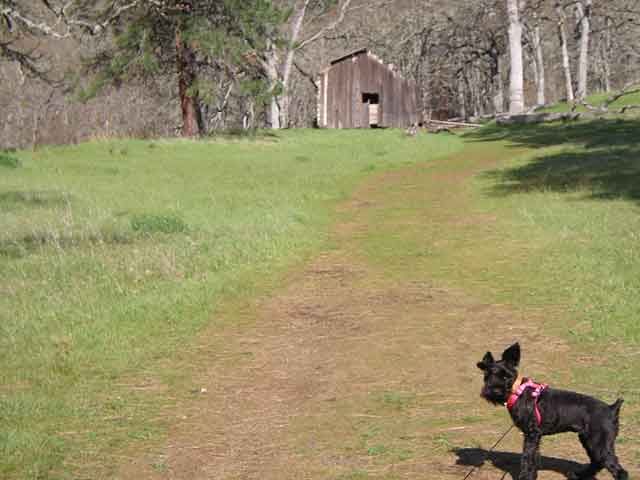 The Catherine Creek hike is on an abandoned farm. I am always amazed at where people try to farm. The soil was about half an inch deep with nothing but basalt from there to the earth's mantle. Aurora was freaked out by the abandoned shack.