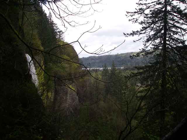 Side view of the upper falls and out to the Columbia.