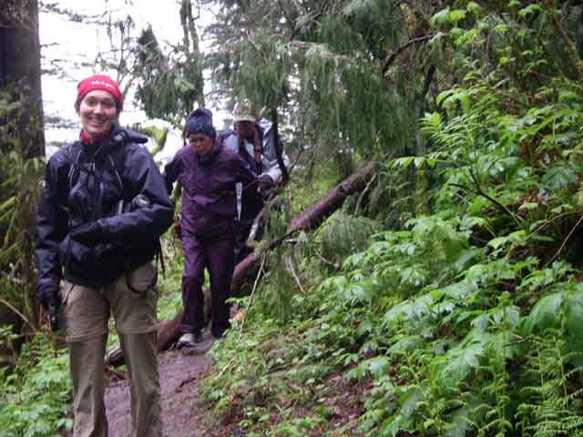 I was teasing Keely and Gloria here 'You make your mother climb over logs on slimy forest trails! She is nearly 70 - she should be in a wheelchair locked away in a home somewhere!' Gloria thought I said 'locked away in a hole somewhere' and made it even funnier. |