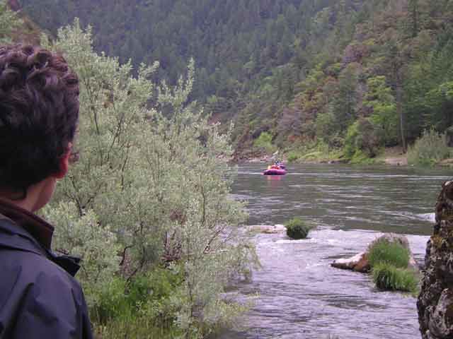 After a few miles on the trail, we took the side route down to Rainey Falls - a wicked rapid. There, we saw the support rafts catching up to us.