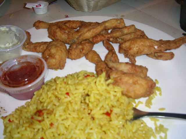 That evening, we walked the length of Everglades City and had dinner at the Seafood Depot. I had the frog's legs and yellow rice. People say they taste like chicken, but if I had chicken taste like that, I'd send it back.