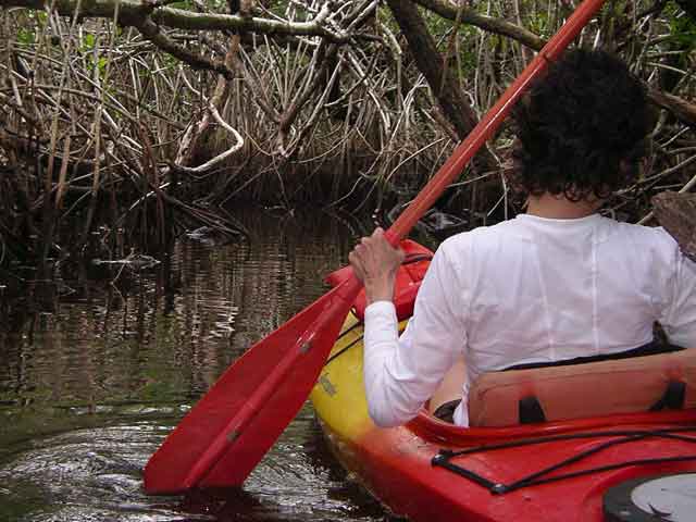 If you look up ahead, about center left, you'll see why Keely stopped. That alligator was about 5 feet long and I don't think he liked meeting us in that creek any more than we liked meeting him. Well, that's not true - I thought he was pretty cool.
