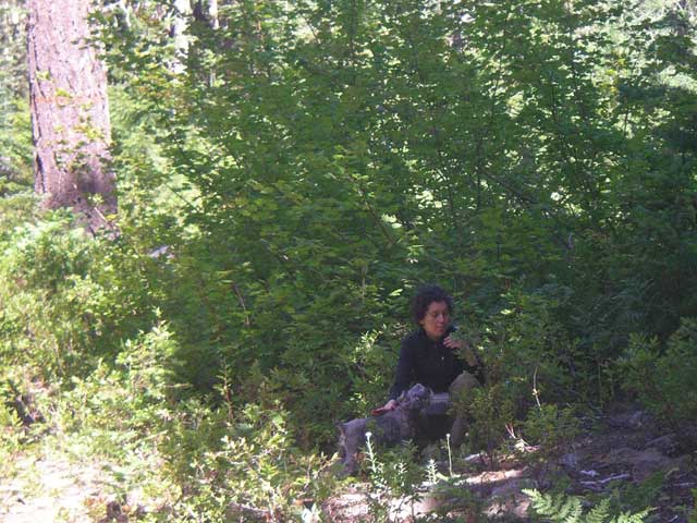 We just sort of fan out and do our picking. The berries are tiny - less than a quarter inch in diameter - so it takes a looooong time to fill a basket.
