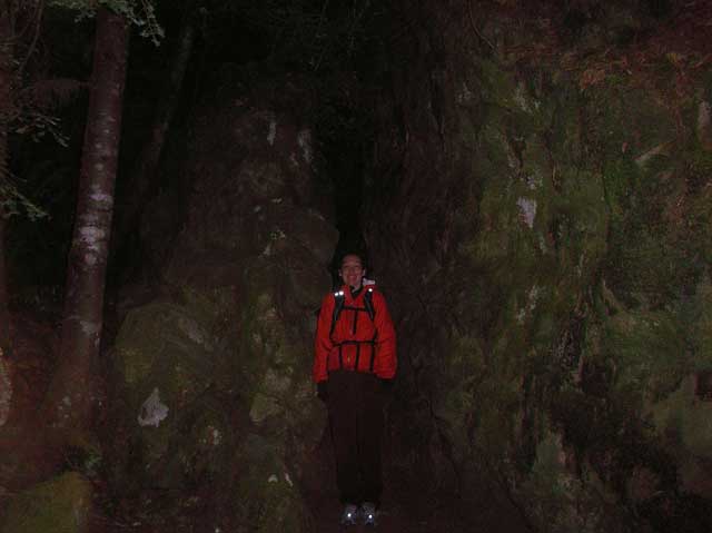 The next morning, we got up early and headed for home. On the way we stopped for some hikes. It was not this dark - it was after 8am - but the 20ft tall rocks were blocking out the light.