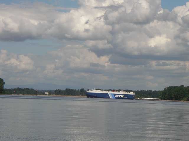 And there is the end of the line. As big as the Willamette is, it is nothing compared to the Columbia. That car carrier ship is just coming into view past Kelley Point. There is a long wing dam there that is pretty much the delineation point between the Columbia and the Willamette. |